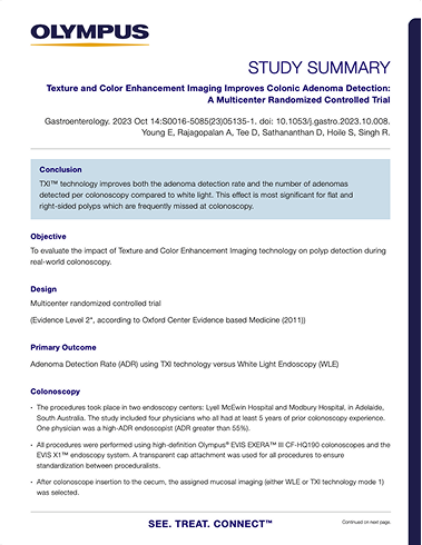 • Young E, Rajagopalan A, Tee D, et al. Texture and Color Enhancement Imaging Improves Colonic Adenoma Detection: A Multicenter Randomized Controlled Trial. Gastroenterology. 2024;166(2):338-340.e3.